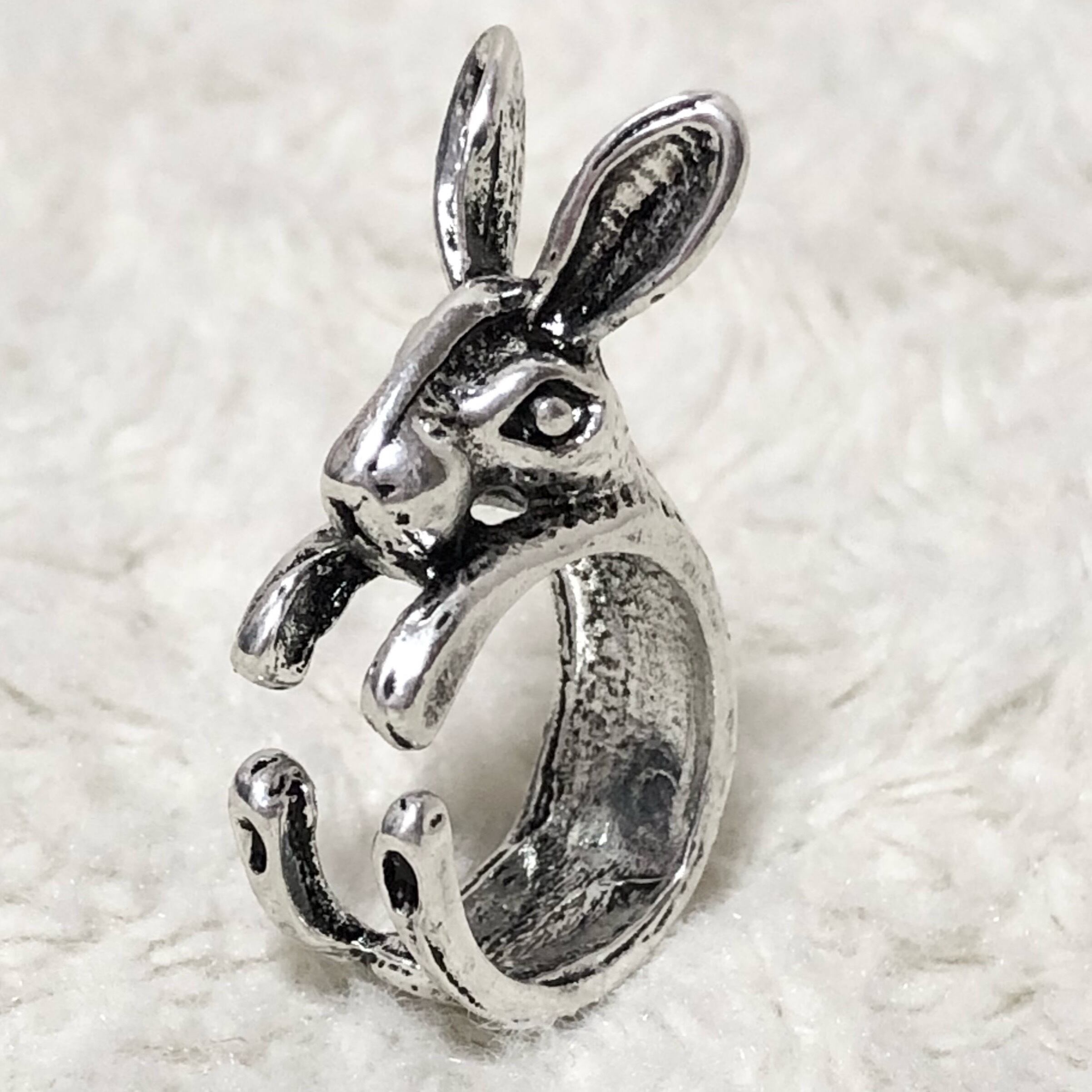 ウサギが指に巻き着いた様な立体的なデザインが個性的でめちゃくちゃ可愛い(o^^o)